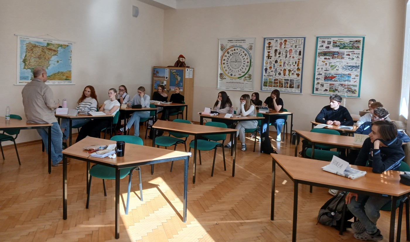 Pětidenní program byl plný zajímavých aktivit. Na Obchodní akademii se španělský kolega zúčastnil hodin českého jazyka, základů společenských věd a zeměpisu vedených v angličtině a zkušenosti s výukou cizích jazyků sdílel s našimi učiteli angličtiny, němčiny, ruštiny a španělštiny. Na informace o výuce odborných předmětů a o organizaci a zajištění praxí navázali studenti 4. ročníků oborů Obchodní akademie a Ekonomické lyceum. V rámci besedy popsali svoje zkušenosti a zážitky z třítýdenních odborných stážích ve Španělsku, Irsku a na Slovensku, které absolvovali v loňském školním roce v rámci projektu Erasmus+. Studenti 4. EL představili p. Retamerovi náš sociální systém a porovnávali jej se španělským. Aktivity studentského parlamentu představili Karin a Jan, tradici maturitních plesů popsaly Bára a Naty a některé skupiny španělštinářů měly v hodinách možnost si v praxi vyzkoušet svoje jazykové dovednosti rozhovorem s rodilým mluvčím.